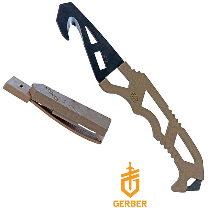 Shop Crisis ProductsGerber Crisis Hook Fixed Blade Knife - 2.9" Black Blade, Tan Handle