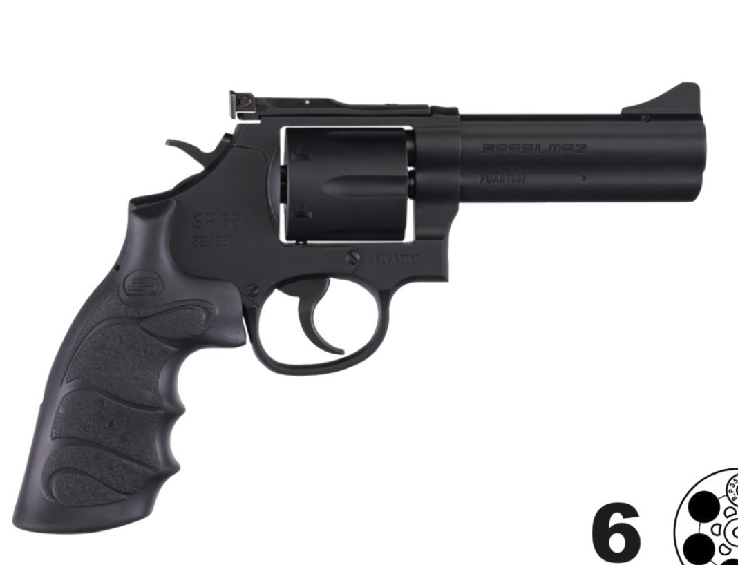 The SAR SR .357 Magnum revolver is a reliable double-action/single-action firearm designed for precision and control. Featuring a 4" black steel barrel and a 6-shot capacity, this revolver is equipped with a synthetic finger groove grip for enhanced handling. The alloy steel frame ensures durability, while the drop safety and hammer block provide added security. Ideal for both target shooting and personal defense.