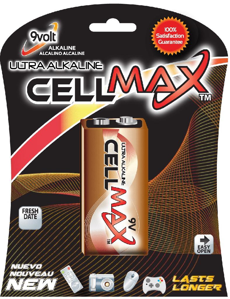 Single 9 Volt Blister Package- CellMax Ultra Alkaline batteries are built to readily start up high drain devices with dynamic instantaneous power. You can count on them for high powered devices such as, toys, electronic games and PDAs.
