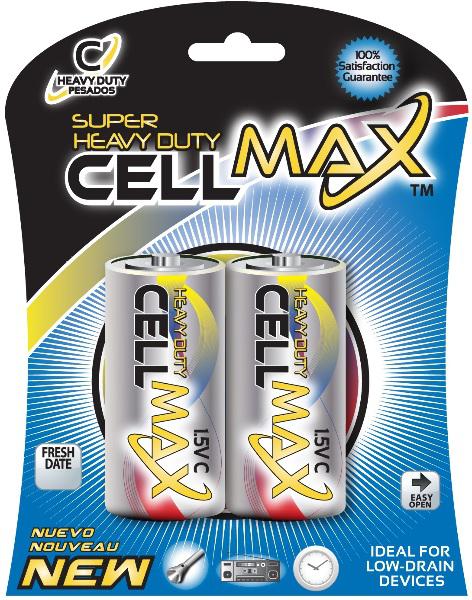 2 Piece C Blister Pack- CellMax Super Heavy Duty Batteries have outstanding durability. They're specially designed to provide lasting, economical power in a wide range of low drain devices such as flashlights, radios, remote controls and clocks.